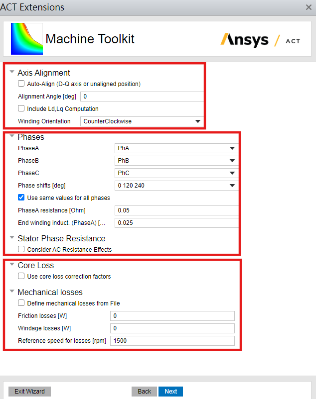 • 設定求解的電氣週期數量、電氣週期解析度的步級數量、計算平均值的週期數量